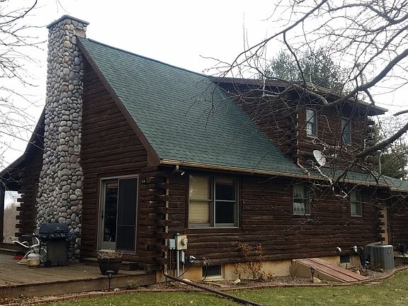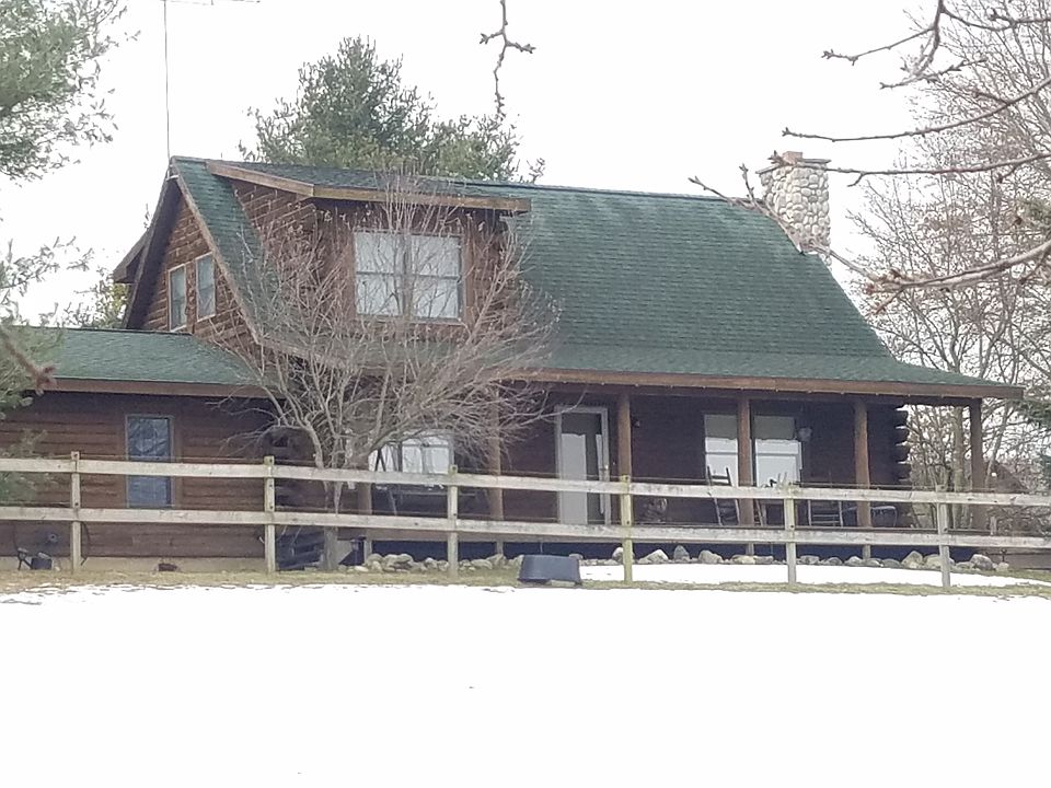 Rustic log home on 10.1 acres, with a 36x40 barn (incl 4 stalls & hay loft) for your horses! Home is standard 2x6 frame with 1/2 logs inside & out. Hardwood floor in great room & kitchen. Real stone fireplace. Loft has large bedroom with walk-in closet & "jetted tub & 1/2". New fridge 5/18. Basement is roughed in for a 1/2 bath, bedroom & rec room. Creek in the back of property, 4 acre pasture, 4 acre hay field.