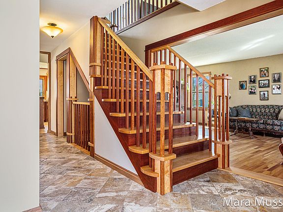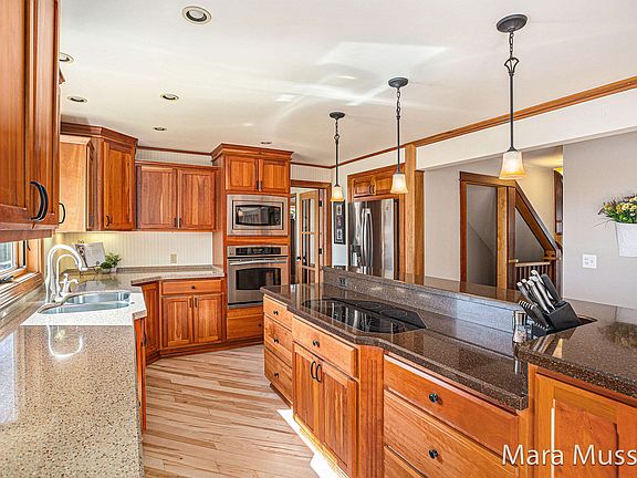GORGEOUS & UNIQUE, this 5 bedroom, 5 bath home has it all. Discover the epitome of luxury living in this customer-built home, nestled on 1.55 acres in the prestigious Byron Center School District. Boasting 6,568 sq. ft. (including lg. workshop) of exquisite living space, this home offers unparalleled craftsmanship and high-end finishes throughout. Step inside and be greeted by the grandeur of this home, featuring heated floors throughout all levels, including the large workshop, for year-round comfort. The main level showcases a stunning living area with a fireplace, perfect for cozy gatherings, and a gourmet kitchen with top-of-the-line appliances and a spacious island, ideal for the home chef. In addition, you will find another formal living room, office, sun room, bedroom with ensuite plus 2nd office and several large workshop areas. Upstairs, the oversized primary ensuite is a true retreat, offering a tile shower, jetted tub, walk-in closet, and a sitting area for relaxation. There are two more bedrooms, full bath and living room to complete the upper level. The lower walk-out level is fully containable and features a bedroom, bath, laundry, and a fully-appointed kitchen, providing a private oasis for extended stays or multi-generational living. The outdoor grill is plumbed with natural gas and is perfect for al fresco dining. The 1,280 sq. ft. barn with electricity and bathroom offers endless possibilities for hobbies or storage. With a geothermal energy system, this home is not only luxurious but also energy-efficient. Don't miss your chance to own this impressive property. Schedule your private showing today and experience luxury living at its finest.