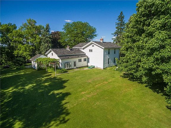 RARE HISTORIC COUNTRY ESTATE! Hilltop setting over 5 acres with views of Honeoye Lake! Beautiful interior with original moldings yet updated to perfection! Featuring beautiful foyer and staircase, open to fireplace living room & entertainment sized dining room! Charming country eat-in kitchen opens to stone gas fireplace family room with wood beams ceiling & southern views! Potential 1st floor in-law suite with bedroom & bath. 2nd floor features three bedrooms, full bath & half bath. Exceptional outbuilding currently with horse stalls & paddock area...great for your animals or for added storage. Great maintenance free vinyl siding and windows! Scenic enclose porch and front porch to enjoy the country views! Easy access to Honeoye Lake and nearby Canandaigua and the Finger Lakes Region.
