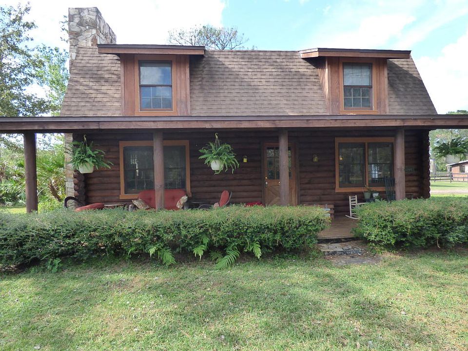 Horses Welcome...Three Acre Ranch. This corner lot ia over 425 ft wide, fronts Alan Shepard, by 316 ft deep, fronts Felda ave. Cleared, fenced and cross fenced for horses to graze and run.Professionally build two story log cabin with three bedrooms two and half bath. The wood burning fireplace in the family room comes in handy this time of year. Front porch and rear screened porch. Two horse stable, horse wash area, dehumidified TAC room, storage room for hay and feed. Separate workshop with power and water. There is a small pond on the property as well. Corner one acre lot can be sold off if buyer wishes. It has a separate tax account. Roof on home replaced in 2004, new metal roof on barn August 2017, new AC system 2003. Home is move in condition. Hard to find three acres together.