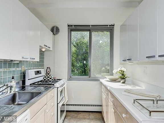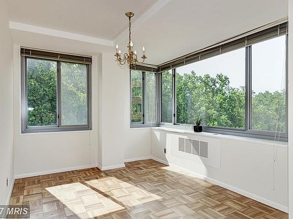 Located in one of the most exclusive neighborhoods of Washington: Wesley Heights. This 2 bd, 2 ba condo is on the corner of the building, surrounded by trees and providing 2 exposures: East and South. Inviting, the living space has approx.1,090 Sq Ft. Beautiful wood floors are throughout, large windows are wall to wall, parking conveys, utilities are included in condo fee