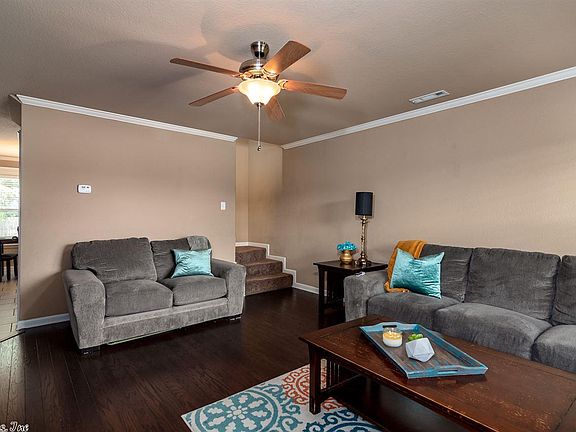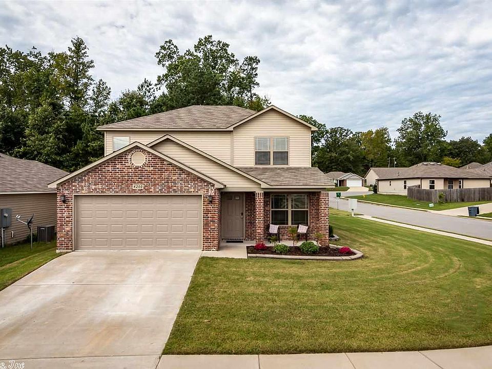 Beautiful 2-story home on large corner lot with great curb appeal. Master on main level and 3 spacious bedrooms, bonus room and bath with double sinks and tub/shower combo up. Hardwoods in great room. The eat-in kitchen has tile floors, granite countertops, stainless steel appliances. The master suite has trey ceilings and pretty crown molding in the bedroom and master bath has large walk in closet, double sinks. The fully fenced back yard backs up to trees for wonderful privacy.