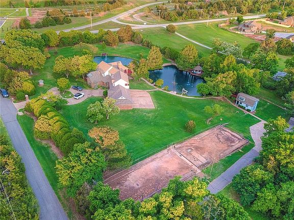 Resort style living on three acres in the heart of Edmond. Amazing home for entertaining and outdoor activities. 2 man made ponds (one with a diving board) for swimming, fishing, paddle boating, zip lines, etc. Nice water features, waterfalls, gazebo, covered patio, mature trees, gardens, landscaping, etc. Interior was recently updated/remodeled and complete in May 2018. Brand new and updated paint, remodeled bathrooms, tile, counters, fixtures, appliances, etc. 4th bedroom option for a study/office area. Master suite has it's own private balcony, fireplace and separate his/hers bathrooms. Detached guest house/apartment is recently updated and is around 500 sf (not included in square footage) with separate driveway and parking areas. 2 water wells with the option to use city water. Amazing property with endless possibilities. Great location to highways and only 15 minutes to downtown OKC. Kids will love this amazing resort-like property!