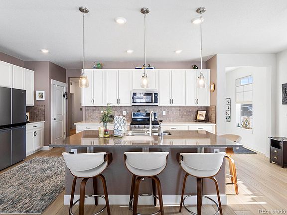 - Description: Quartz Counters, Generous Island, Off White Cabinets, Gas Cooktop, Pantry, Tile Backsplash