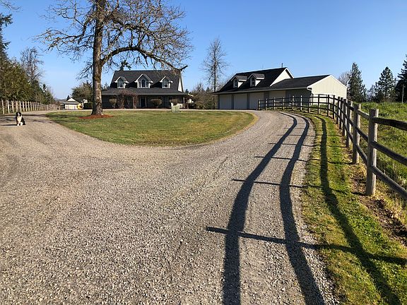 Beautiful farm setting without giving up all the amenities!! Fully fenced flat 5 acres with charming farmhouse, spacious shop, and easy keeping barn with stalls. 2 minutes to I-5. Tucked away off the beaten path the house is located behind a gated community. Large 4 bay shop. Wonderfully landscaped to bring minimum upkeep. Huge back deck offers perfect location for gatherings. Large garden area and shed.