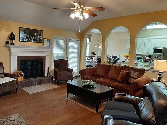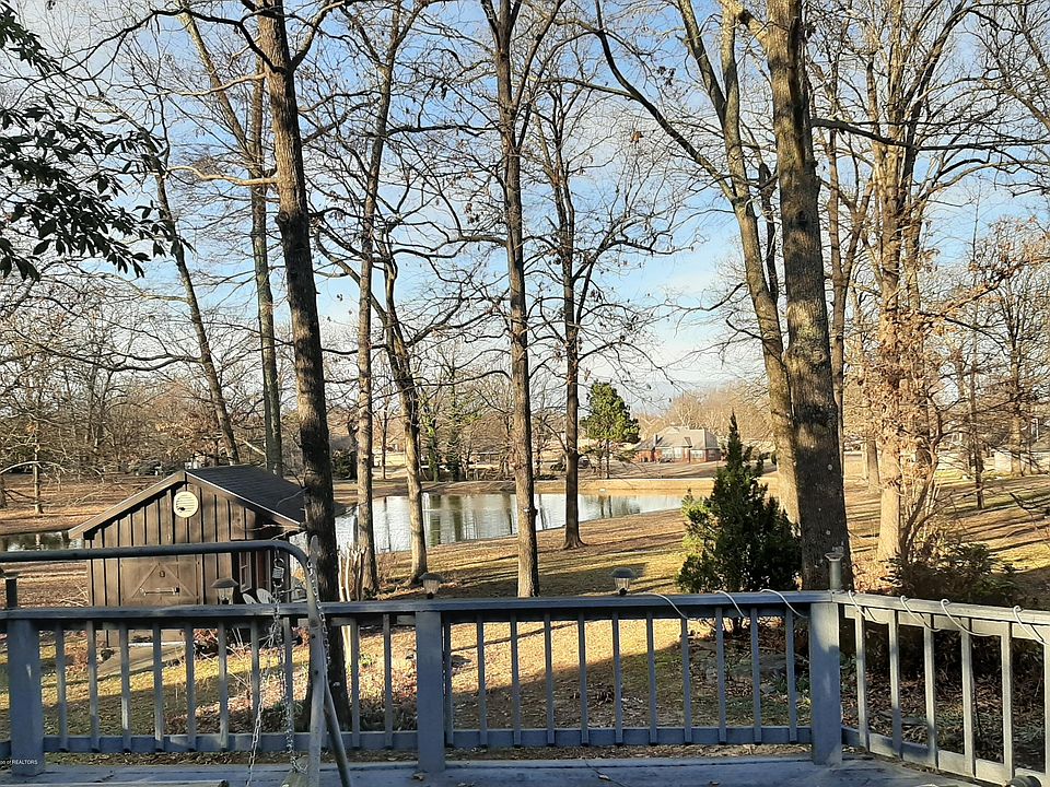 Enjoy this beautiful water view from your kitchen table.Beautiful one level split bedroom plan with entertaining areas of large den, kitchen formal dining room, as well as oversized master bedroom peering over a two acre lake. Enter through an arched 9 x 9 foyer This home has tall 10' ceilings throughout, new floors, new paint, granite counter tops, new vinyl windows, recessed lighting, The master bath has a large 8 x 10 walk in closet with shelves, step up marble jacuzzi tub with a dazzling chandelier. It also has an over sized double walk in shower with a seat and large double vanity., Double trade ceilings,enhance the master bedroom . Duel Bose speakers on deck for entertainment. Spacious home on 3/4 acre lot at the edge of a 2 acre lake. Adorable storage building at back by lake.
