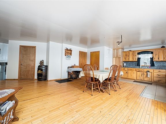 Amish built house with hardwood flooring throughout. Basement that is used for living with walkout feature. Basement has a kitchenette. Over five acres that has been used as mini horse farm. Large workshop excellent for wood working. Barn with six stalls. Upstairs kitchen has Amish built hickory cabinets. This property adjoins the Tri Valley wildlife area.