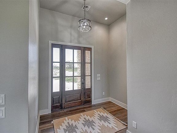 Located in Mahogany Hills Estates, this home will have many high-end features. Sitting on .5 acres, this farmhouse style design will have an elegant rock entry & long front porch. Faux-wood tile will be throughout the first floor w/ the master bath featuring heated tile. More inside features include: 2 kitchen islands w/ granite countertops, Café appliances w/ a 48” refrigerator, 7’ doors on the first floor, expansive glass pane door, & a 5’x6’ concrete storm shelter. The exterior has 2x6 framed walls, fiberglass casement windows, Artisan 4 panel patio doors (black on black), 12” center roof rafters, hurricane clips & straps, SealTite Foam insulation in the walls & roof, & a Trane 95% high efficiency 16 Seer HVAC unit for optimal home temps. From I-35 & Indian Hills Rd head EAST until S. Bryant Ave (turn left) & follow to S. Broadway Ave. Turn left on S Broadway Ave & follow approx. .2 miles to the entrance of Mahogany Hills. Turn right onto Rustic Trails.