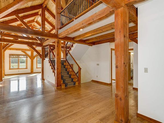 Unique Clydesdale Frame Home on 8.5 acres near Cheney! This 3 BR 3 BA 3 Car Garage home offers 21 foot high ceilings, exposed wood beams, hardwood floors, open floor plan and large loft. The large open foyer will welcome you into this beautiful home with vaulted ceilings. The living room with wood burning fireplace and great views of the property. The large open kitchen with be a popular gathering place for family and friends. Kitchen features include spacious dining area, island, pantry, and eating bar. All kitchen appliances stay. The Master Bedroom is amazing with 21 ft vaulted ceiling, large walk-in closet with built-in storage, master bath with double sinks and shower. A second bedroom, and hall bath with shower and pedestal sink and a large mud room round out the first floor. The beautiful loft area (27X19) would be the perfect office or craft space. The finished daylight basement offers large open family room and separate game room, third full bedroom with adjacent third bathroom. Outdoor living space includes a private covered deck, fenced yard. Other features include whole house filtration system, 50 gallon water heater, 2 high efficiency HVAC units, gas powered generator, roof with class 4 shingles (50 year), and vinyl siding. An added feature of this property is the 18 X 30 pole barn with electric service and 50/50 split floor â" wood and dirt. This home is a must see for your list - call to schedule your private showing today!