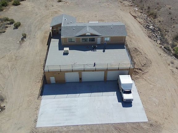 Mobile Home on top of 2700 sq Ft garage, with ~300 sq ft "Arizona" room on North East corner of Mobile home with stairs down to garage. One bedroom converted to Office (view to west) ~2000 sq ft deck, on top of garage