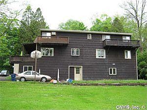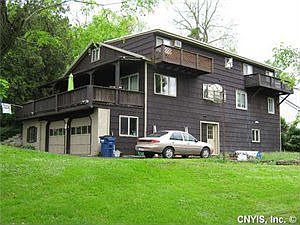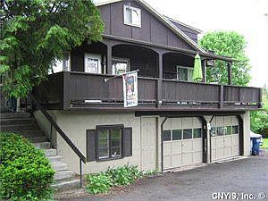 The ultimate live-in 2 family on Village edge, this large ranch-cape style features a "house size" 3 bedroom, 1 1/2 bath residence to the right with huge covered porch and 2-car garage, and a choice roomy 2 bedroom apt with hardwoods to the left. Separate front center hall entrances, all separate utilities, full walkout basement w/separate laundries & private rear yard, public water & gas, short walk to Marcellus Park & Village center.