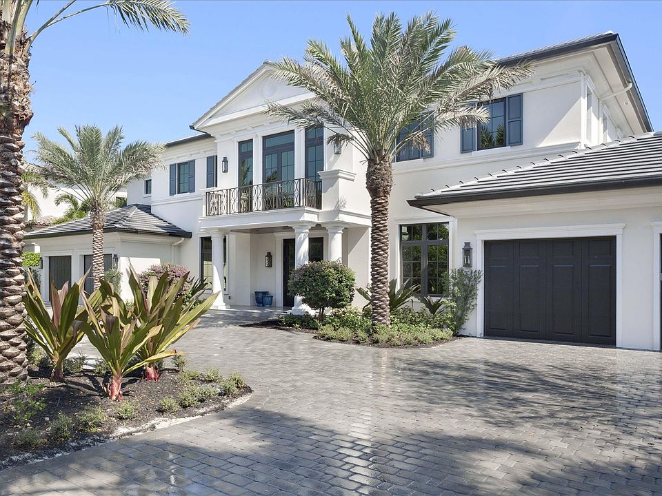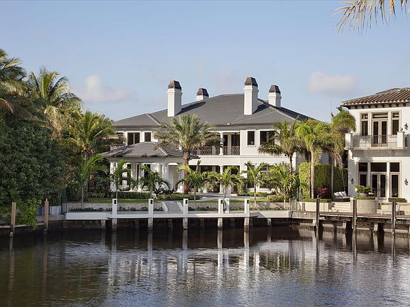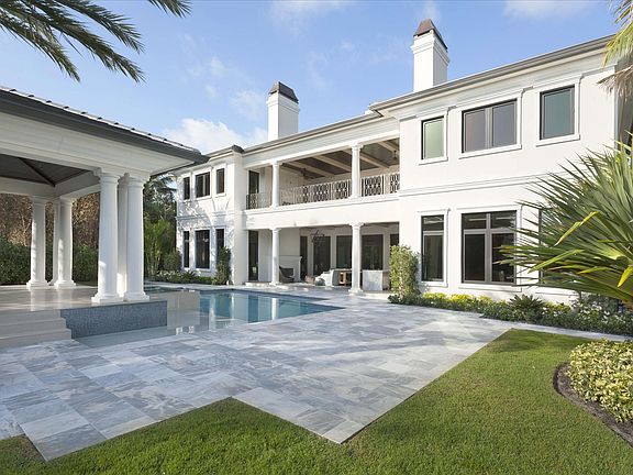 Brand New Tropical Georgian-inspired Sanctuary deepwater estate with 65+/- feet of water frontage by renowned builder Home Dynamics Corporation, Bali Design Group Architects and interior designs by Marc-Michaels. Stately oval foyer entry opens to a formal living room and dining room. Water view club room features an adjacent office/library with garden loggia. The gourmet island kitchen opens to the breakfast and family rooms. Also featured is a main level bedroom suite for guests. Second level lavish master quarters feature a sitting room, balcony, his and her spa-like baths and walk-in boutique closets. Three additional bedrooms suites plus secondary family room, exercise room and covered water view balcony.