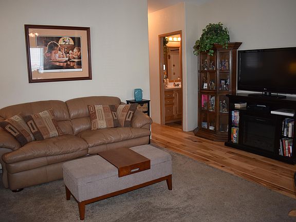 Cute 2 bedroom 2 bath double wide manufactured home in a 55+ quiet community. Good size bedroom and beautiful Amish wood floors, Enclosed deck to enjoy beautiful summer nights, rock landscape backyard, with two shed & carport. Heat pump with a/c & back up electrical.
