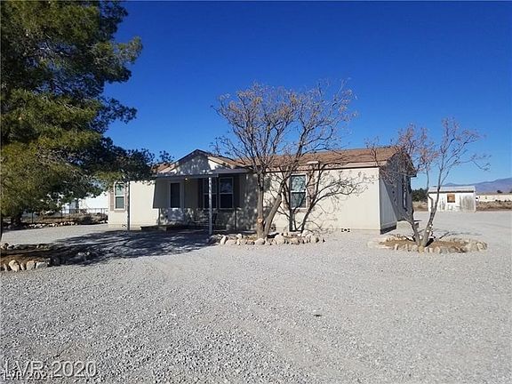 Great property on the south side with an EZ commute to Las Vegas. Zoned for horses. 3 Bed/2 Bath, front and back covered patios with brick pavers. Kitchen has center island, plenty of cabinet storage, separate laundry room, and a nice size dining room. Propertyis fully fenced with gravel rock landscape for EZ maintenance, well house and nice storage shed. Enjoy Country Living at its best, a slower pace of life and outstanding Mountain Views. Come in, look around, fall in love and make an offer!