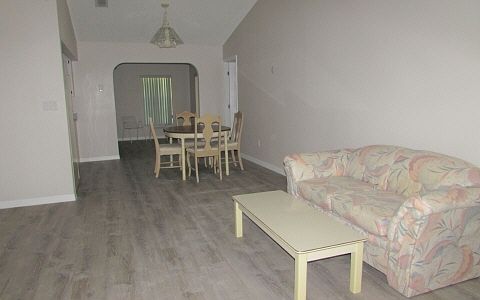 This is a single family home and has been renovated with all new flooring, bathroom updated and painting in all enteria. A tubular skylight is in the kitchen, has a family room with a pass-thou from kitchen. The home is light and bright and has a bay window in living room. The low Homeowners Association fee includes lawn service, irrigation community center, heated pool and shuffleboard. You are allowed two small pets.