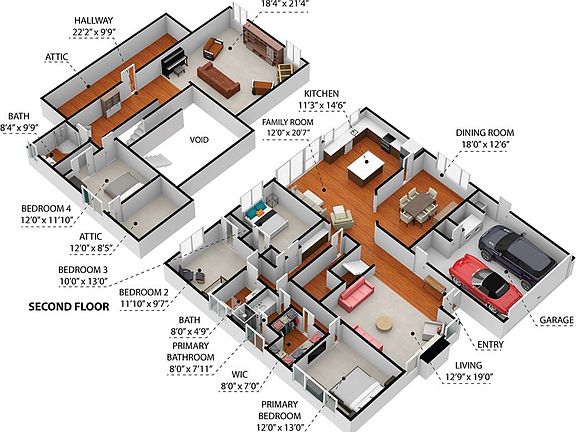 - Attached garage spaces: 2