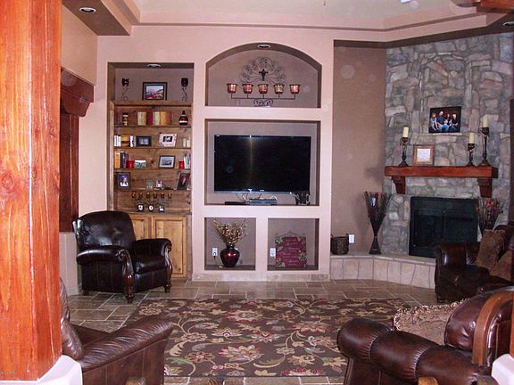 If you are looking for a gorgeous well-built home, add this one to your list. This quality 2006 home is on 1.51 ac that abuts State Land & where there is plenty of room for horse set-up, workshop or storage for your toys. Home features include a great floorplan with 4 bd, 2.5 ba & a large kitchen that would delight any chef with it's large island, highly upgraded granite countertops, upgraded stainless steel appliances & custom Alder cabinets. The entryway opens to a nice Great Roomaccented with wood vigas, travertine tile, archways, pot shelves, built-in entertainment center & stone gas fireplace. The master bath has a deluxe jetted tub & separate shower. There is central vacuum, oversized 3-car garage, covered back patio, lovely front courtyard, beautiful landscaping & mountain views!