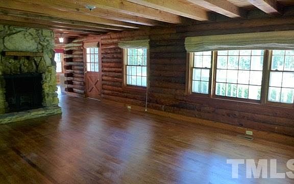 A gorgeous log cabin home on 12+ acres with pond, just 15 minutes to town. Completely updated, including roof, logs, kitchen, flooring,more. Exposed beams, beautiful stacked stone fireplace, full length porches both front & back. Big/Kitchen Dining area, & charming Family Room w/ six windows, hardwoods. Two big BRs upstairs, including MBR w/ 2nd fireplace! Incredible land w/ fruit & flowering trees, all set way back from the road. A peaceful, bucolic setting w/ the charm & character of a true log home.