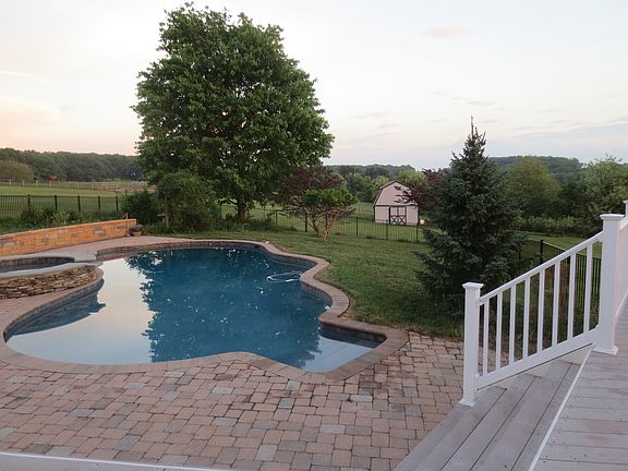 WOW! You will be amazed from the moment you drive up to this exquisite home. Enter the circular driveway. Plenty of parking. Imagine sitting on the front porch enjoying the country views. This Fantastic 2 story colonial has everything that you have been looking for. Freshly painted and move in ready! Large country kitchen. Beautiful brick fireplace. Plenty of space for a home office. Gorgeous hard wood floors. 1st floor owners suite features walk-in closets, custom tile whirlpool tub/shower. Convenient 1st floor laundry room. 2nd owners suite upper level features walk-in closet and custom tile shower. Sunroom overlooks the amazing backyard. Downstairs you will find the Fully finished walk-out basement: recreation room, den, full bath and kitchenette. Options for in-law suite in lower level or on 1st floor, both options have laundry room accessibility. Enjoy your summers lounging by the in-ground pool and relaxing in the hot tub. Maintenance free deck. The large backyard is fully fenced and professionally landscaped. Check out the koi pond. Your private backyard oasis! schedule a showing today! OFFERS DUE by midnight on Monday June 6th.