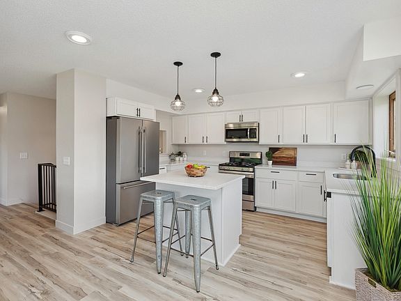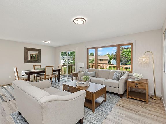 Renovation complete! The open floor plan creates a seamless flow between the spacious rooms, which are bathed in natural light, thanks to large (newer) windows. Our open-concept kitchen is ideal for the culinary enthusiast with NEW appliances, quartz countertop and island for informal dining. The dining room and bright living room provide plenty of space for gathering and entertaining. The remodeled bathrooms add a touch of luxury, and the convenience of having three bedrooms all on one level enhances the functionality of the home. Retreat to the primary bedroom with spa like bath and walk-in closet. The neutral paint toned walls and trim complement the LVP flooring and NEW carpet. Enjoy hosting the next event with the spacious lower-level amusement room which is equipped with a rough in for future bar. An oversized secondary family room, 4th bedroom and well-appointed bath are nearby. NEW vinyl siding. Eagan HS and Dakota Hills Middle School within walking distance.