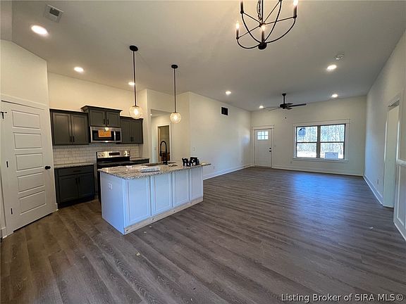 FLOYDS KNOBS NEW CONSTRUCTION is HERE! You can be the first to get in! Eligible for USDA 100% Financing with $0 Down payment. Quality Built by ASB, this "ALLEN" Plan is a WIDE OPEN floor plan. This beauty offers 3 bedrooms and 2 full baths, 3 CAR GARAGE, with nearly 15000 sq ft finished! This one will have great curb appeal with a mixture of Stone and Siding, 2 car wide driveway and beautiful detail. The main level boast a foyer area, living room with 10ft ceiling, 3 bedrooms, LVP "Life Proof" flooring, drop zone with board and batten wall with hooks, laundry room, and nice kitchen with stainless steel appliances, GRANITE, breakfast bar with dining area and open to the living room! The Owners suite offers 10 ft ceilings, BIG Walkin Closet, and private bath with DUAL vanity granite top, and CUSTOM TILE shower! Builder is ENERGY STAR RATED and provides RWC WARRANTY at closing.