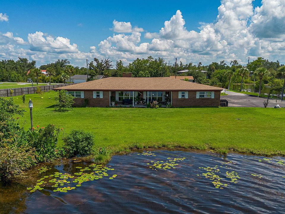 Enjoy the perfect mix of privacy, modern upgrades, and water access in this beautifully renovated 4-bedroom, 2.5-bath ranch-style home with over 2,400 sq. ft. of living space and approximately 600 feet of shoreline wrapping around three sides of the property. A brand-new dock on the canal, private community boat ramp, and expansive lot make it ideal for boating, fishing, and soaking in serene water views from nearly every angle, with all scenic views of the lake.