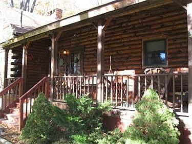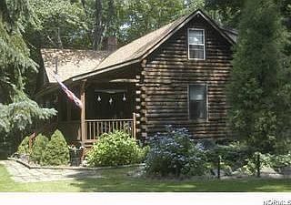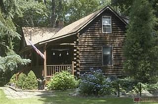 Secluded log cabin in the woods. Beautiful finished New England White Pine Log Interior with 1 gas fireplace and 1 wood burner. 3 bedrooms & 3 full baths. Finished lower level with walkout to covered patio. Living Room boasts a brick fireplace with White Pine mantel, vaulted ceiling with fan and a display loft. Fabulous views from every room. 3 season sunroom overlooks wooded ravine. Cut trails to river & picnic area. This is a nature lovers paradise. Updates include house roof in 2001, updated kitchen 2001, barn roof 2005, and barn siding in 2007. Home is also equipped with a electric miser for lower utilities. Barn also has water.