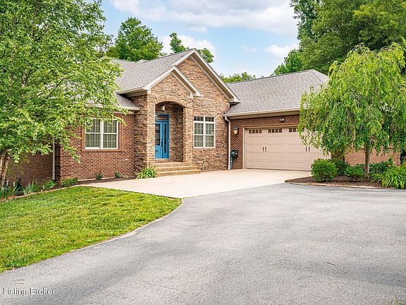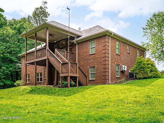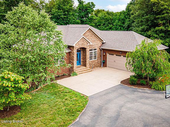 Situated on a spacious cul de sac nestled among mature landscape is 4210 Emma Lou Drive, located in the Floyd Central School System. Featuring 4,000+/- sqft of finished living space, this thoughtfully designed, 4-bedroom, 3 full bath home is less than 15 minutes to downtown Louisville. The ranch-style home has magnificent 12' ceilings in the foyer, office and living room. Enjoy the light filled living room creating an inviting atmosphere for entertaining with a double-sided gas fireplace. The 8' kitchen island highlights solid cherry full overlay style cabinetry. The expansive first-floor owners suite features a spacious walk-in closet and en-suite bath with double vanities. The partially finished walkout basement offers another open concept great room, 4th bedroom, flex space/craft room, a soundproof media room, additional storage and utility garage. Enjoy the covered rear deck overlooking the serene 3.98-acre property.