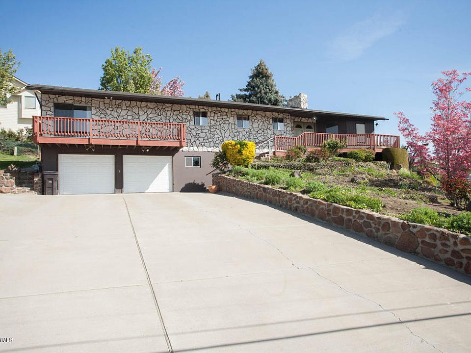 Custom built by contractor Louie Dolecheck in 1977 as his personal residence. Offered for sale for only the second time. Panoramic views from the living room, master suite and deck. Updated roof, gas furnace & AC, decking & fresh interior paint! Basalt rock fireplace with petrified wood hearth. Oversized master suite with sitting area and balcony. Lower level rec room with wet bar, card table area and fireplace featuring original Jim Beam bottles. Oversized garage with shop bench.