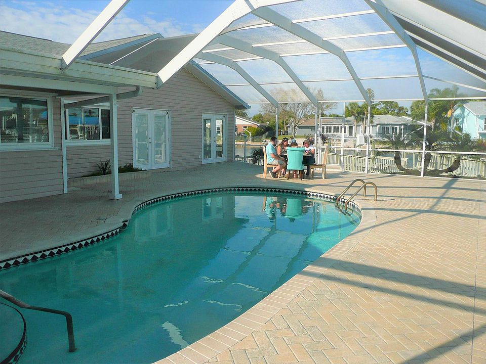 Large airy rooms with Cathedral ceilings, Kitchen is about 25 by 12 . Lanai is 28' by 52' with fine mesh. The "Sun Room" will be your new favorite place to sit and enjoy your morning coffee. Look out to the very wide canal and you may see a dolphin pass by along with boats of all types and size. Home has a large pool and a Dock. House is fully furnished, including dish's, silverware etc VRBO 2200798 Owner pays for water, electric, yard and pool maintenance. NO Smoking, No Pets .