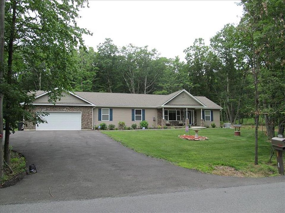Gorgeous, recently built 3 BR ranch in Beltzville Lake Estates. The warm and inviting open concept living area and kitchen provide the perfect space for gatherings or just relaxing by the fireplace. High quality upgrades complete this home, including the hardwood floors, beautiful soft close cabinets, granite countertops and master bedroom suite. The private, peaceful back-yard has the added bonus of being partially fenced in. The oversized two car garage (24x30) and shed offer plenty of storage space. Special features include a complete water filtration system and softener, built-in radon system, and a whole-house generator for peace of mind. Full basement with lots of potential for further finished space and value. Low taxes, low HOA fee, many opportunities for enjoyment: private spring-fed lake in community for summer fun and winter ice skating, many nearby attractions for outdoor adventure, sporting, and dining. Conveniently located near PA Turnpike and other major highways.