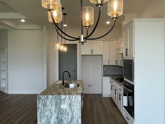 POPULAR OPEN RIVIERA FLOOR PLAN W/3BR/2B ON AN UNFINISHED WALKOUT W/OPTION FOR OVERSIZE BR, WALK IN CLOSET, FULL BATH W/TUB/SHOWER UNIT, UTILITY GARAGE (UNFINISHED), & LARGE FAMILY/MEDIA SPACE: passive radon system, public sidewalks, lighted streets, concrete covered porch/sidewalk/driveway, & patio, landscaped front exterior, & covered 12x13 deck w/ceiling fan; coffered/tray/hip ceilings; kitchen includes custom tile backsplash, island w/breakfast bar, large walk in pantry, granite countertops, & dining area; trim details throughout; utility/mud room includes upper cabinets, bench w/coat hooks; AGENT IS RELATED TO SELLER!
