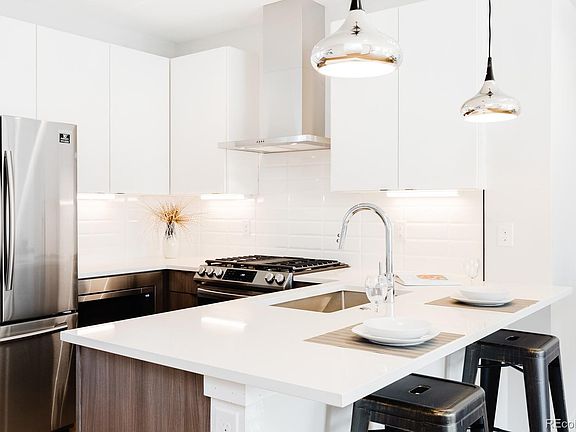 Welcome to Denver’s newest transit-oriented development. Located just blocks from the highly-anticipated World Trade Center and 41st + Fox Light Rail Station, this 1/2 duplex shimmers w/ modern style + unparalleled convenience. The main floor of this home is an open, dreamlike cascade of natural light + wood flooring. A wide fireplace feature grounds the home in ample warmth that flows into the adjacent kitchen. Stainless steel appliances, sleek cabinetry + a high-top breakfast bar surround this kitchen in contemporary flair. Two en-suite bedrooms boast city + mountain views, torrents of natural light + spa-like bathrooms wrapped in designer finishes. A soaring, illuminated stairwell guides residents upstairs to the crowning jewel of this home: a pristine rooftop deck beaming w/ sunshine + unobstructed views of the city skyline + foothills. Imagine evenings that begin in nearby LoHi, RiNo + Downtown—and end w/ a night cap on an awe-inducing rooftop. The coveted Denver lifestyle begins here.