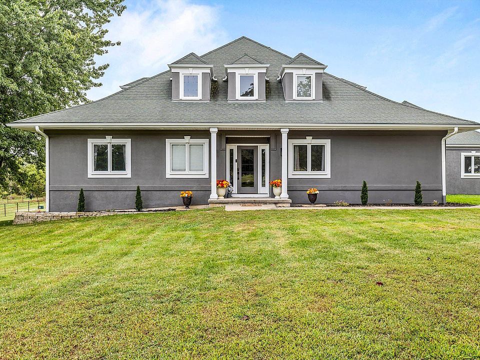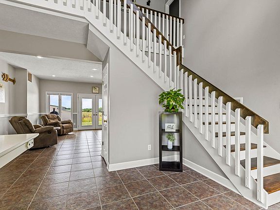 Welcome to your own slice of country paradise! This beautiful 2-story home is nestled on nearly 28 breathtaking acres and greets you with a charming pear tree-lined gravel driveway. Step inside to soaring ceilings in the entryway and a flexible space that could be used for formal dining, a cozy sitting area, or even a home office. You'll love having not one but two spacious living areas--one with a wet bar for entertaining, and the other featuring soaring vaulted ceilings and a gorgeous stone fireplace. Both living spaces open to the back patio, creating the perfect indoor-outdoor flow. The kitchen is a dream with crisp white cabinetry, commercial-grade stainless appliances, a bar-top counter, breakfast nook, and a peek-through opening to the living room that keeps everything feeling connected. The main level includes a spacious bedroom with a full en-suite bath and walk-in shower--ideal for guests or multi-generational living. Upstairs, you'll find a cozy loft space perfect for a playroom, gym, or even a third living area. The primary suite is a retreat of its own, featuring a double vanity, walk-in shower, soaking tub, and a large walk-in closet with built-in shelving. Two additional bedrooms and a third full bath with a jetted tub and dual sinks complete the interior. Outside, a 40x60 4-stall pole barn with a tack room is ready for your horses or livestock, and the auto-waterers and rotating pastures make ranch life a breeze. Enjoy a stocked, spring-fed pond and keep cozy through the seasons with an outdoor wood-burning furnace. This property checks all the boxes for peaceful country living with space to roam--don't miss your chance to make it yours!