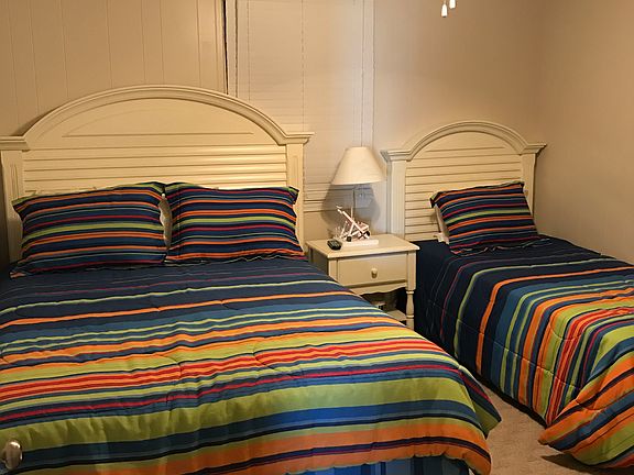 Surrounded by high end homes and condos, this is a premium location for the money. Ground level, excellent inlet view (approximately 50 ft from back porch) or 2 minute walk to the beach. Completely remodeled. Custom cabinets, Volga blue Russian granite. Easily sleeps 6-8. Never rented. HOA dues include cable, water, upkeep, pool, insurance, etc. One of the lowest HOA dues on the strand. Sold fully furnished. Bedrooms are large enough to add another full bath, if desired.