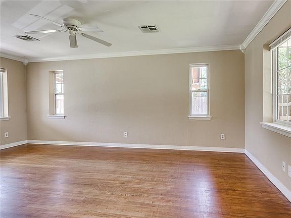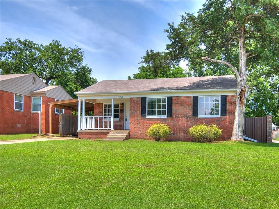 Updated and move-in-ready, fully bricked 2 bed, 1 bath, 3 car garage with additional carport parking. Updates include white vinyl windows, fresh neutral paint, white baseboards, brushed nickel light fixtures, stainless steel appliances, tiled shower-tub combo in bathroom, and central heat and air. Original hardwood floors throughout living room and bedrooms. Kitchen features painted white cabinets, marble-look formica, stainless steel appliances, and gas burner stove. Detached 3 car garage with access on Utah Ave.