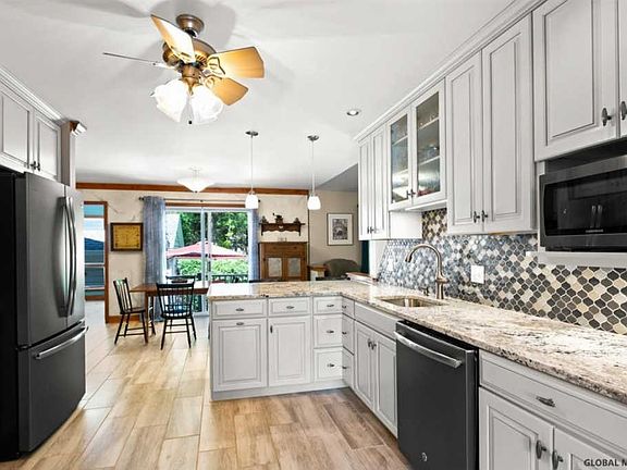 Wow! Exquisite 3 bedroom, 3.5 bath updated ranch situated on a beautifully landscaped lot. Magnificent remodeled eat-in kitchen (2017) with abundant cabinetry, granite countertops and upgraded appliances. Fabulous family room with cathedral ceiling, stone fireplace, wood floors and picture window. Gracious dining room with custom inlay wood floors and trey ceiling. Luxurious master suite with stunning remodeled master bath and entry to your own private patio. Wonderful finished basement includes bar, family room, guest room and full bath. An inviting sunroom, home office and generator add to this home's appeal. Enjoy your own backyard oasis with inground pool, patio and pool cabana with bar, your perfect place to relax or entertain friends and family. Welcome Home!!!
