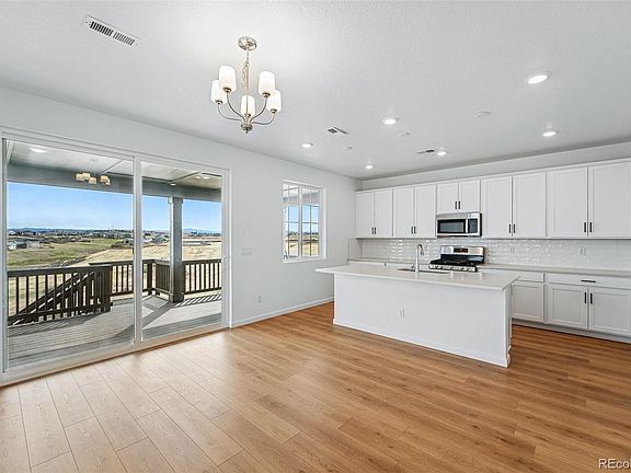 MLS# 9014354 Ready Now! Welcome to The Sedalia, where modern living meets elegance in this stunning two-story home. The main floor features a cozy bedroom and a full bathroom. Just down the hall, you’ll find an expansive great room bathed in natural light, seamlessly connecting to the dining room and an eat-in kitchen island. Step outside from the dining room to enjoy Colorado's sunshine on the outdoor living spaces. Upstairs, discover two comfortable bedrooms, a full bath, and a spacious loft. Indulge in the luxurious primary suite, complete with a 4-piece bath and a large walk-in closet, along with a convenient laundry room. Plus, the included basement offers additional storage or the perfect space for a home gym. Structural options include: extended covered deck, traditional fireplace, bedroom 4 with bath, walkout basement.