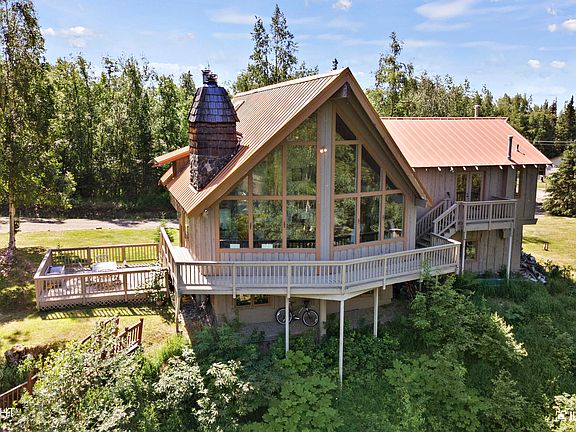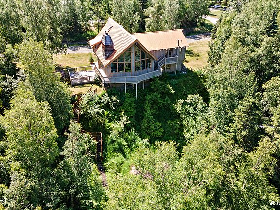 UPSIDE OPPORTUNITY! This grand vintage home, priced $95,000 below assessed value, sports 200 feet of Rabbit Creek flowing right through the backyard, with stairs down the hillside to enjoy your private creekside paradise. Massive picture window views frame the woods around the creek. The interior of the home is warm and inviting, with wood paneling, a massive stone fireplace, and two wood stoves.The multi-floor layout adds to the spaciousness, with the double-height great room, raised landing leading to the bedrooms, and very private lower level. The three bedrooms include an enormous primary suite with its own private deck, soaking tub, walk-in shower and large walk-in closet. The other two bedrooms are space upstairs and down for added privacy; a lower open area could be used as a family room or office. This home needs attention and updating to take it to its next stage of life. Homes comparable in size in this neighborhood, dated but in good repair, sell in the $600,000s; a thoroughly updated creekfront home should command $700,000+. There is significant upside to be had in this stately older home.