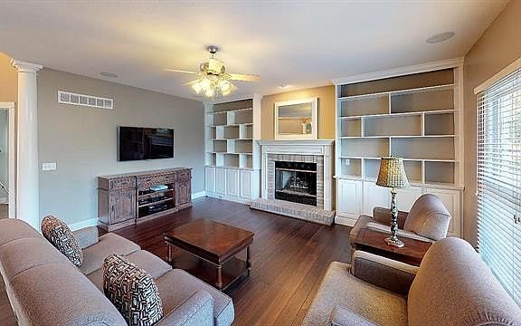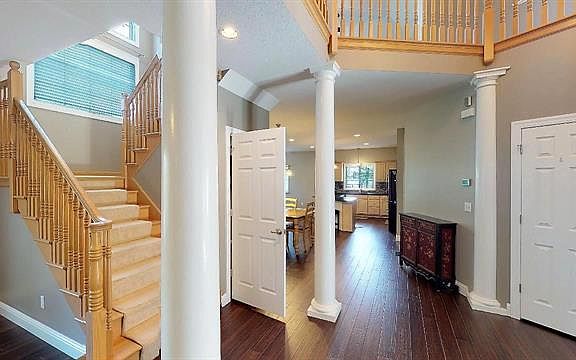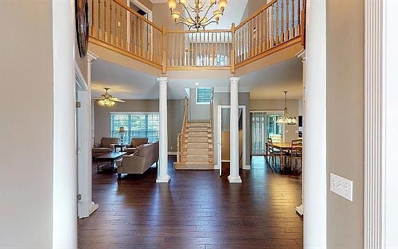 GORGEOUS White Brick & Gray Shuttered 4 Bedroom, 5 Bath, 2-Story in Chateaux at Woodfield neighborhood at Great Price! Upgraded new wide plank Bamboo hardwood on main & tastefully painted interior throughout. Upon entry, Spacious Formal Dining Room w/ coffered ceiling, crown molding & wainscoating. Study w/ double glass doors. Through Foyer to Vestibule w/ dramatic views of upper living. Wonderful Great Room w/ Gas Fireplace & Built-In Shelving. Open Concept Kitchen & Breakfast Area w/ Granite Counters, Island, Tiled Backsplash leading to Vaulted Family Room. Added Sunroom leading to Paver Patio & partially fenced backyard. Laundry room & Half bath on Main. Upper Level includes Master Bedroom Suite w/ coffered ceiling, Luxurious Master Bath w/ dual vanities, whirlpool tub & stand up shower & very large walk-in closet. 2 Bedrooms w/ JNJ Bath & Additional Bedroom w/ own Full Bath. Unfinished Basement w/ much storage & 3/4 Bath. Zoned HVAC, Security & Irrigation Systems & 3 Car Garage!