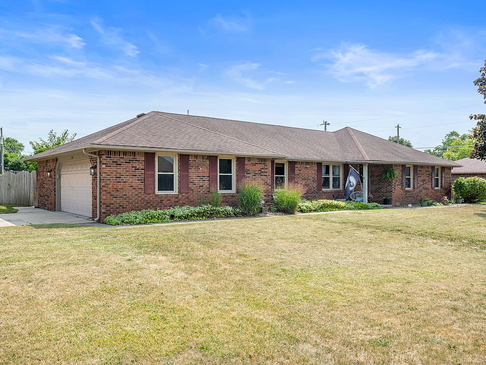 Charming all brick 3 bedroom, 2 bath home situated on extra large corner lot. New and updated features include beautiful hardwood flooring and carpet throughout, bath/shower in the main bathroom, HVAC and newer windows. Kitchen appliances stay. Formal dining room with built in shelves and storage, cozy fireplace in the family room, plus a laundry room. Enjoy your private backyard oasis with beautiful landscaping, covered deck, full privacy fence, and storage shed. Don't miss out on this incredible opportunity to own your dream home!