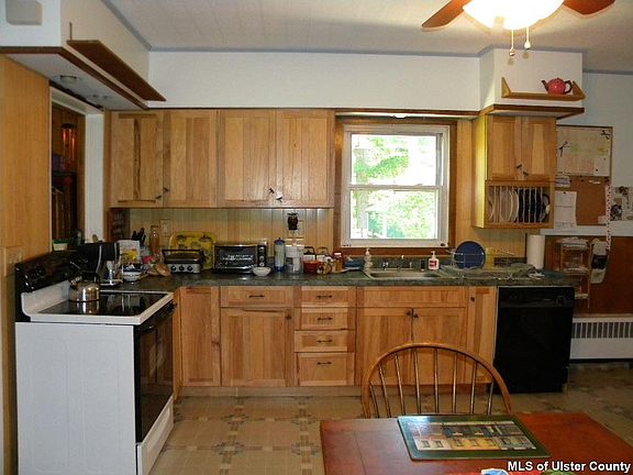 You'll fall in love with this charming country farmhouse affordably priced and conveniently located in the Town of Olive. Minutes to Phoenicia, Woodstock, hiking trails, skiing, and world class fishing. Very convenient to Kingston, NYS Thruway, and Trailways Bus. Swim and fish at your leisure in the beautiful Esopus Creek right in your own private backyard! The property itself is lovely, fenced in for kids and pets, with large open deck, patio, and garden areas. The home offers 4 generously sized bedrooms, an amazing open eat-in country kitchen, huge living room with wonderful field stone fireplace, wide board wood floors, newer roof and replacement windows, main floor bedroom with adjoining office/den, mud room, large front entry room great for storage.