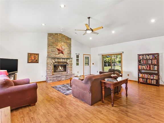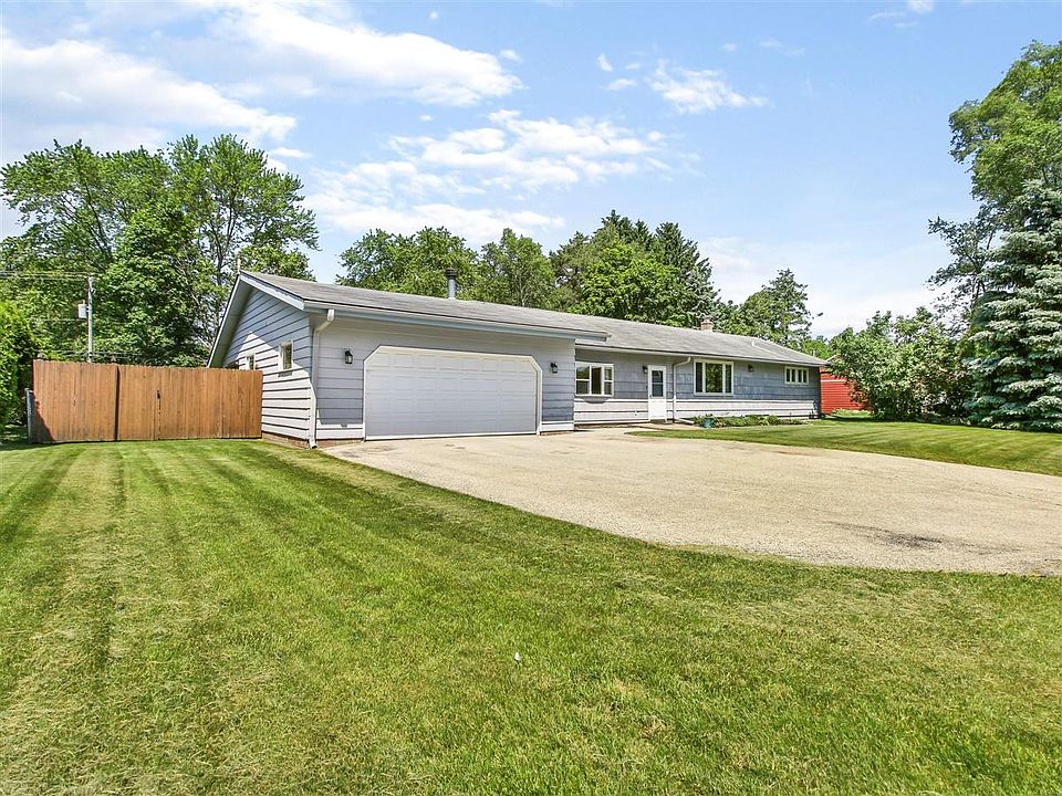 Wonderful New Berlin ranch home situated on partially wooded nearly 3/4 acre parklike fenced in lot. The open great room with vaulted ceiling and floor to ceiling stone natural fireplace with raised hearth welcomes you in. Sliding glass doors to patio and beautiful backyard is perfect for barbeques, entertaining, gardening and more! Covered patio with hook up for hot tub. All white trim and 6 panel white doors throughout home. Large picture window fills the dining room with natural light. Updated kitchen with decorative backsplash, pantry, and includes all stainless steel appliances. Spacious and remodeled tiled bath. Lower level being plumbed for second bath and ready to be finished. Furnace and A/C 2017. Close to parks, dining, shopping, freeway acccess. Your story begins here!!