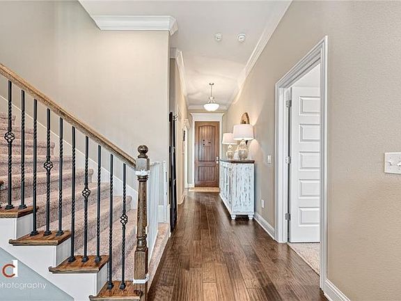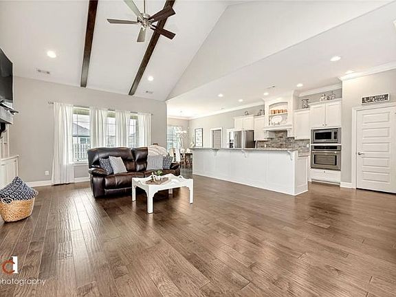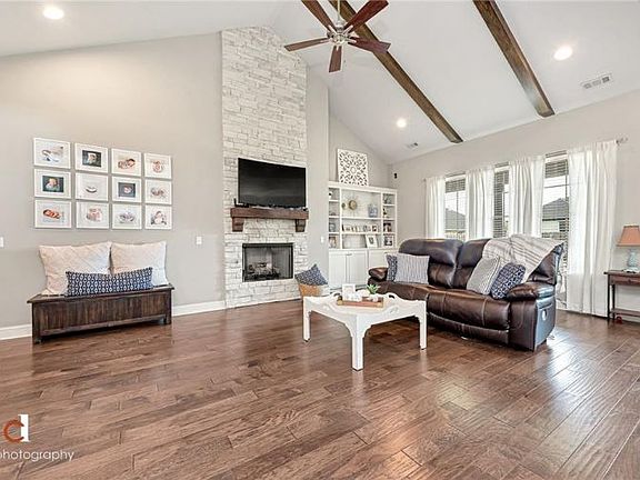 This absolutely stunning Bentonville home leaves nothing to be desired! Spacious eat-in kitchen offers plentiful counter space, built in gas range, two pantries (including one walk-in), and access to the covered back patio. Vaulted ceilings with wood beams are found in the open concept living area, along with the gas fireplace and built-ins. The master bedroom also has access to the patio, and features double walk-in closets. Wood floors flow throughout the living areas and central vac makes clean up easy! Large bonus room upstairs gives great flex space. Beautiful laundry room has a convenient sink. Neighborhood POA includes trails, stocked pond, playground, and community pool!