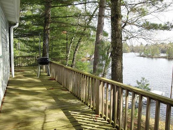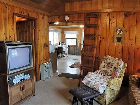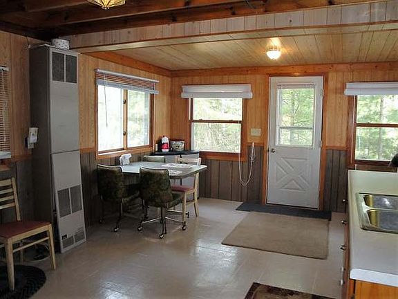 This privately situated Northwoods getaway is located on a no-through road and has 283 feet of frontage on Lake Creek of the Rhinelander Chain of lakes. There is a moderate-to-gradual slope to the southerly sand and fisherman shoreline. Views of islands and open water can be enjoyed from the cottage and deck, or from the newer pier. Inside, the knotty pine living room has a brick, wood burning fireplace and a patio door leading to the lake-facing deck. Two small bedrooms and a 3/4 bath flank the living room. There is a loft sleeping or storage area accessed by a ladder from the living room. The large kitchen and dining areas offer abundant windows to enjoy the views and space to spread out. Furnishings are negotiable, so this cottage could be ready for immediate enjoyment! According to the DNR, Lake Creek is a 188 acre, moderately clear lake with a maximum depth of 12 feet, and fish include Musky, Panfish, Largemouth & Smallmouth Bass, Northern Pike and Walleye.