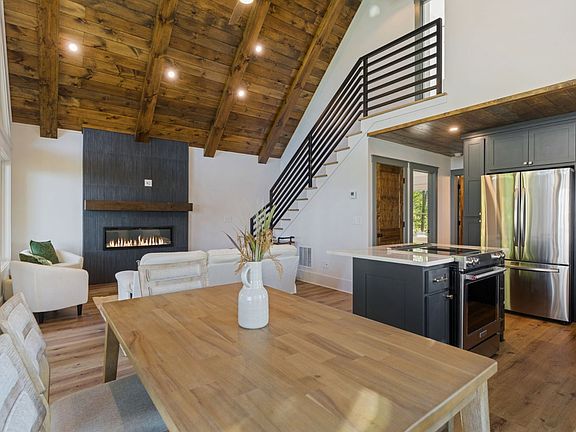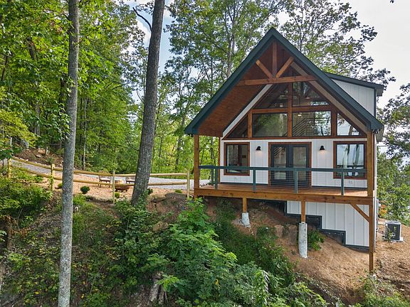 This gorgeously appointed turn-key cottage offers the perfect balance of modern details and rustic touches, all while boasting jaw-dropping views of layered majestic mountains & Lake Chatuge! From the soaring cathedral ceilings in the living area to custom kitchen cabinetry, every aspect has been carefully designed for maximum comfort and enjoyment. Delight in the dramatic tile linear fireplace in the living area & panoramic lake views from the dining area with large fixed windows. With a primary bedroom on the main level plus an additional spacious bedroom upstairs, you'll have plenty of room for overnight guests. Enjoy low maintenance exteriors thanks to hardiboard siding while having plenty of storage space in the standing crawlspace area - perfect for expansion should you decide to add a rec area or extra sleeping space! Step outside and relax by your personal fire pit with friends and family! This is the perfect opportunity to start your own successful short term rental or add to your expanding portfolio! And with its convenient location, you'll have easy access to boating on Lake Chatuge, Ridges Resort, Brasstown Valley Resort & Spa, prestigious golf courses, gourmet dining options, shopping destinations, and pristine nature trails in the national forest!