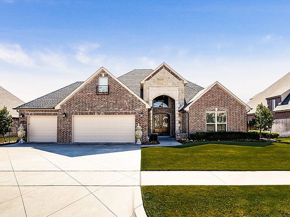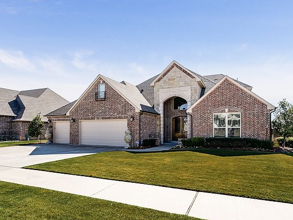 Fabulous custom built home with luxury finishes! Stunning, grand entry, extensive hardwood floors & beautiful crown molding throughout. Master with private fireplace & guest bedroom on 1st floor along with gorgeous kitchen w/walk in pantry, formal dining & office. Open, spacious and well-appointed plan with ample storage & floored attic. Many upgrades w/designer features, private backyard, tankless hot water, inground tornado shelter in garage. Game room w/bar.