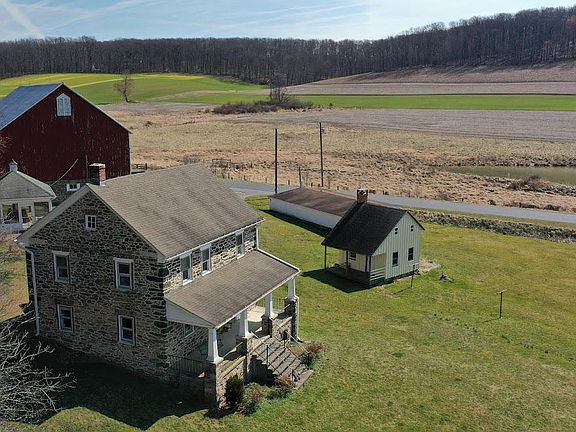 This circa mid to early 19th century home offers a high standard of craftsmanship. The stonework is lovely, particularly the large corner guoins that dress and partly secure the corners, a noteworthy feature for the era. The farm accessory buildings include a large bank barn, pole building, shop, summer kitchen and a lovely, covered patio that provides a viewshed of the farmland that you will appreciate. The accessory structures are in very good shape and provide the type of utility that you would hope for on a farm. There is approximately 55 acres being farmed, 17 acres wooded, and the balance in either pastureland or buffer strips around the stream and pond area. The entire farm is in a rural legacy easement that perpetually protects the character of the area. There are numerous agriculture related uses for you to enjoy along with private passive recreational uses. Contact your agent representative to view this lovely property.