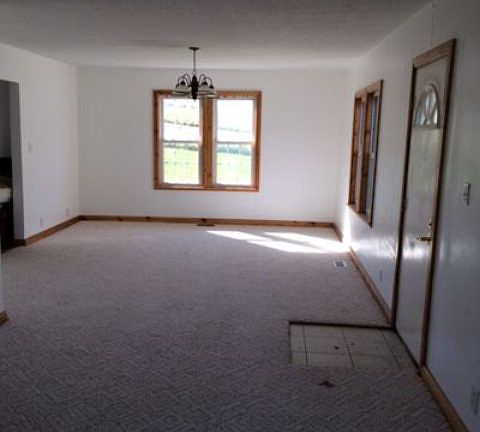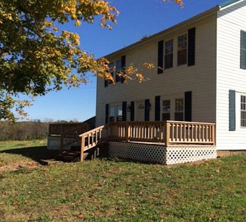 Large 4 bedroom home has been completely remodeled. Two bedrooms have patio doors to roof-top patio. Large eat-in kitchen plus dining room. Huge deck wraps around 2 sides of home. 2 car garage, out-building and pond. New roof. Shared driveway. Barn on left is not on this property. Geothermal heat. Old abandoned coal vein is under property, all other mineral rights stay with property. Mobile home to be removed.