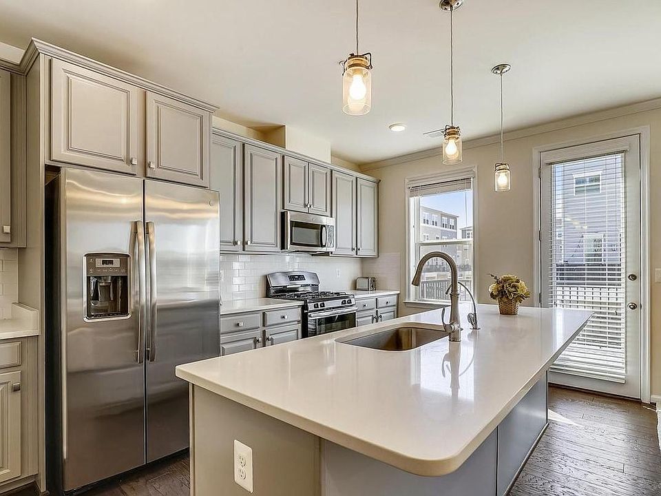 Upscale, newly built (2019), end-unit 4-level townhouse-condominium in an excellent school district (by GreatSchools Rating) with plenty of HOA/condo-provided amenities and 5-minute walk to shopping mall/grocery/restaurant urgent care/eay-care/dental/bank/CVS/library/major hospital center within 50min walk in the area of #2 Best Suburban Neighborhood in the Washington DC metro area (by Niche.com). Loudoun County commuter bus stop to major federal agencies in DC and Arlington areas. Free water and high speed fiber optic internet service ($150 to $250 value pack, depending on usage). 1st level: Bright sunlit optional living/office/pet area, a small den linked to the over-sized 1-car garage/1-carport. 2nd level: Open concept kitchen (quartz counter top and breakfast bar for 4-5 seats, living room, walk-in food pantry, half bath, closet/storage, a good size deck with a open view. 3rd level: a huge master bed (21'X14'), big walk-in closet, sunlight filled master bath (2-separate marble countertop sinks, spa-like soaking bathtub, standing shower room, doored toilet with a big window), laundry room (LG W/D) 4th level: Two big size bedrooms (17'4"" X 11'3" each) with small closets, one bedroom is directly connected to a full bathroom. Plenty of sunlight. The owner pays for water bills ($150 to $200 value, depending on the family numbers), trash removal, snow removal, front flower gardens and lawn/road maintenance, and all HOA/condo-providing amenities fee (including swimming pool. tennis and basketball court, etc), totaling $400 fees. The tenant is responsible for gas (Washington Gas for cooking/heating/hot water: about $30 for summer and $100 for winter, depending on the usage) and electricity (Novec Electric about $40 for winter and $120 for summer, depending on the usage), TV cable (if you want to connect) Smoking is not recommended, but if you do, we can discuss. Parking: Oversized one-car garage (20' X 11'4" fits a truck too!) and 3/4-covered (by the deck) carport for a big SUV. and first-come first-serve parking area every where, plus extra 50-car parking lot for a minute walk.